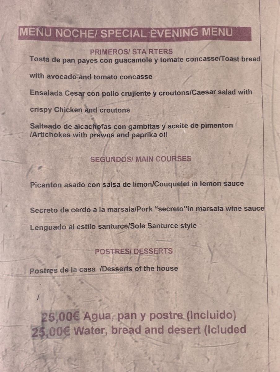 The menu showcases a refined selection of dishes, with a particular emphasis on authentic local flavors. Diners rave about the exquisite paella, laden with fresh shellfish and perfectly cooked rice, which is a must-try for any visitor. Additionally, the evening menu offers an exceptional three-course meal at just €25, representing fantastic value for money.